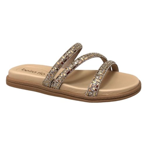 Com tiras finas adornadas por cristais, ele valoriza os pés com brilho sutil e toque moderno.